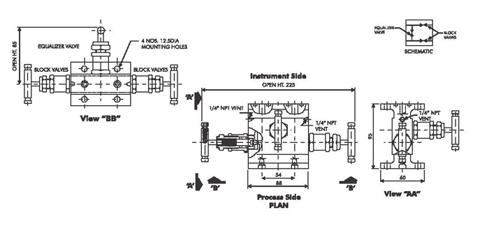 - Two isolation and one equalizing valve for instrument balancing applications.