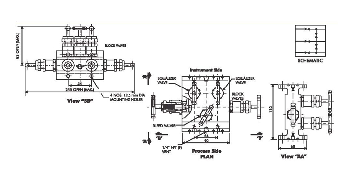 - Two isolation and one equalizing valve for instrument balancing applications.