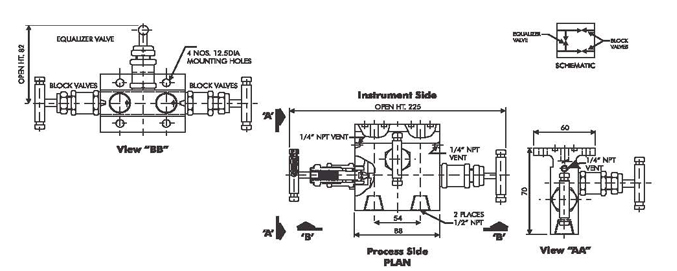 - Two isolation and one equalizing valve for instrument balancing applications.