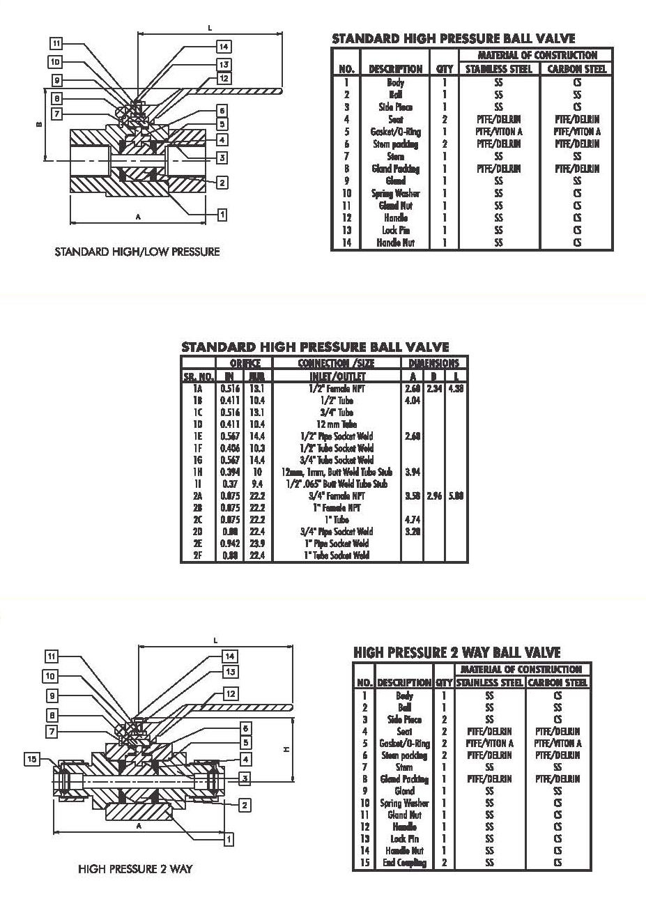 - Free floating ball allows pressure actuation in closed position.